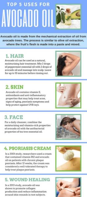 In addition the fatty acids in avocado oil also have benefits to reduce inflammation during the healing process. You can mix avocado oil with olive oil and add a few drops of jasmine oil for fragrance. The oleic acid also.